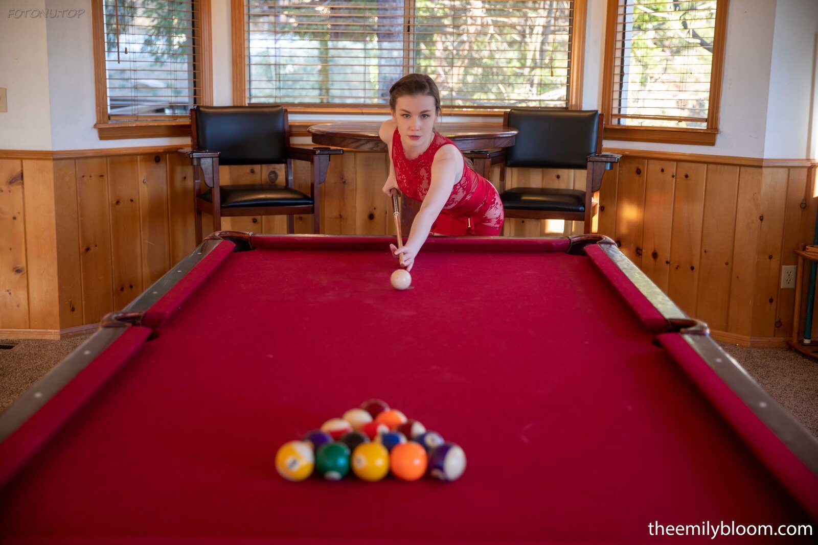 Описание: Чтобы выиграть у парня в бильярд, симпатичная шатенка надела красное эротическое белье. В скором времени милашка так сильно завелась, что устроила стриптиз. Забравшись на бильярдный стол сучка показывает свой сочный орех и эротично руками потирает длинный кий. Сексуальное напряжение нарастает и девка раздевается. Она оголилась перед своим другом, показав не только грудью, но и киску и предложила ему положить камеру и пошалить.